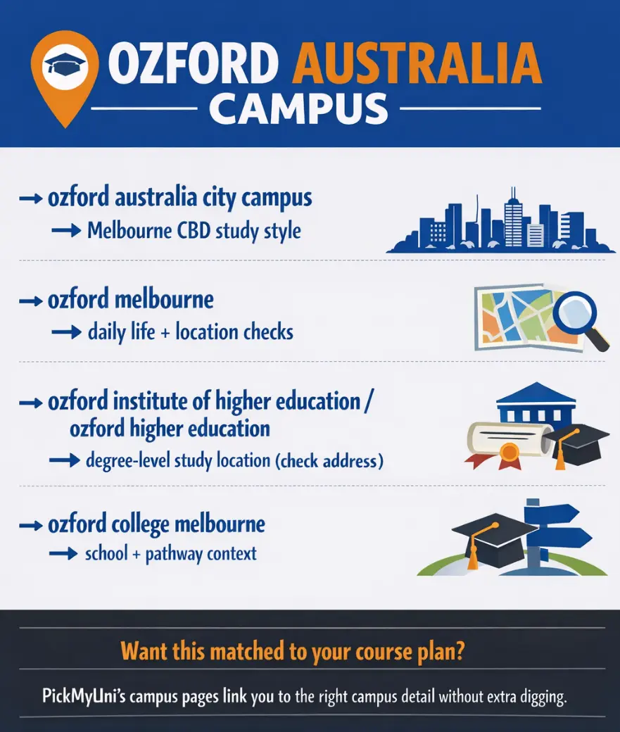 If you’re torn between Ozford Melbourne and Brisbane, PickMyUni can help you compare your study goals (course level, timetable fit, and where you want to live) so you pick the campus that makes day-to-day life easier